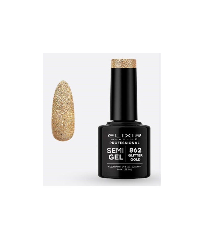 ESMALTE SEMI GEL ELIXIR 8 ML. GLITTER GOLD Nº 862