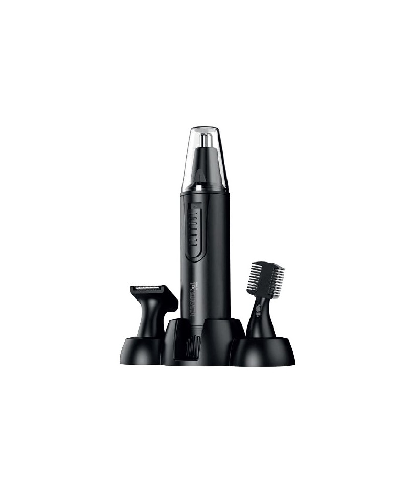 Máquina con 3 cabezales para cortar los pelos de la nariz, oreja y arreglar la barba. Es una herramienta práctica para mantener un aspecto cuidado de manera fácil y sencilla.