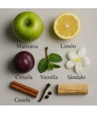 Las notas de salida de manzana y ciruela le otorgan una frescura irresistible, mientras que las notas de corazón de canela, clavel y caoba le dan un toque picante y levemente dulce. Finalmente, las notas de fondo de madera de cedro, vainilla y vetiver le aportan una profundidad y calidez que envuelven en un aura elegante y masculina.